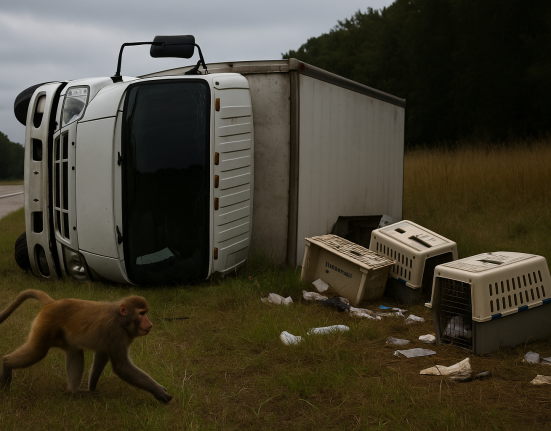 On Tuesday, 28 October 2025, a truck transporting rhesus monkeys overturned on Interstate 59 near Heidelberg in Jasper County, Mississippi. The cargo reportedly included rhesus monkeys being moved from a biomedical-research facility toward another location. In the immediate.